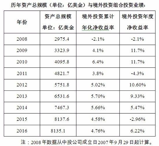据悉,中投公司成立于2007年9月29日,成立以来,中投公司累计年化国有资本增值率为14.35%,其中境外投资累计年化净收益率5.51%。10年来,中投公司已经发展为世界第二大主权财富基金。(人民网)