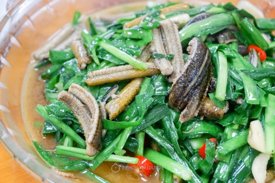 如果说鱼籽鱼泡还算常见,这个芹菜炒鳗干则很有温州特色,鳗鱼在当地并不是名贵物种,晒干也不可惜。