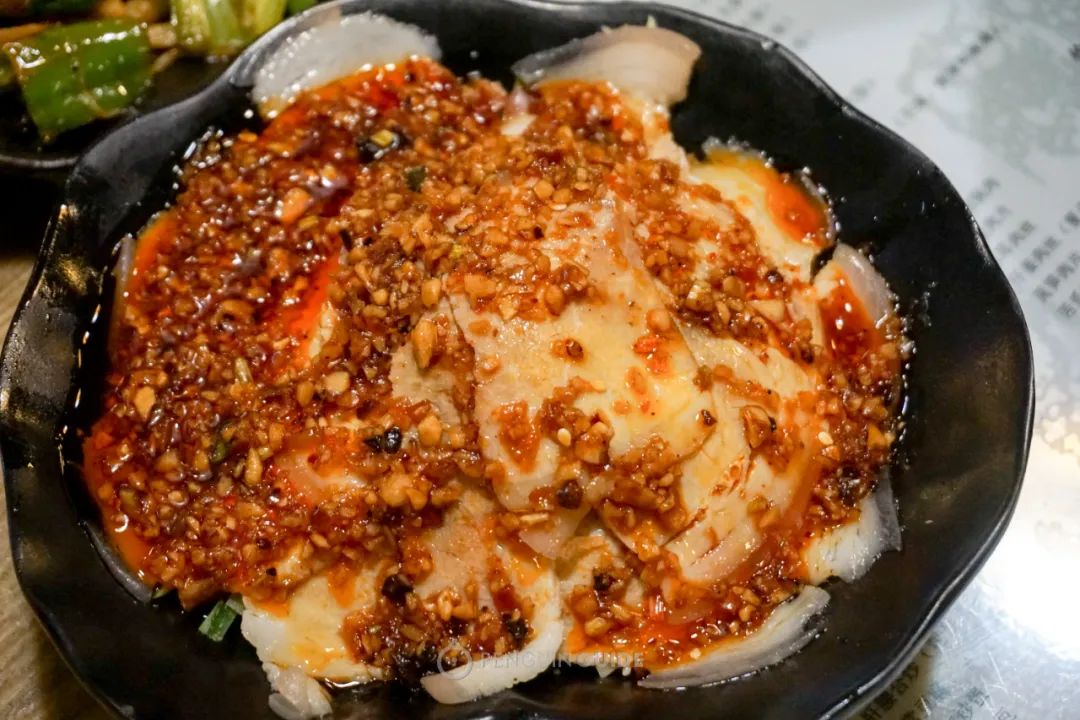 挺意外的,这家炒得毫无腥气,微微甜来自洋葱和甜青椒;刚入口是脆的,嚼到后面是软嫩的,是最好状态的鱼肚了。