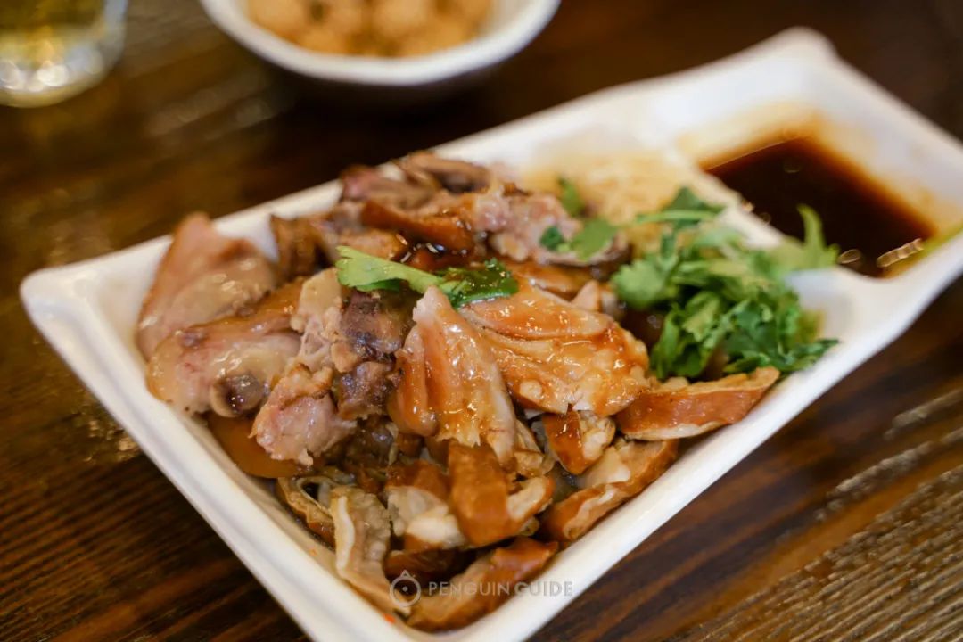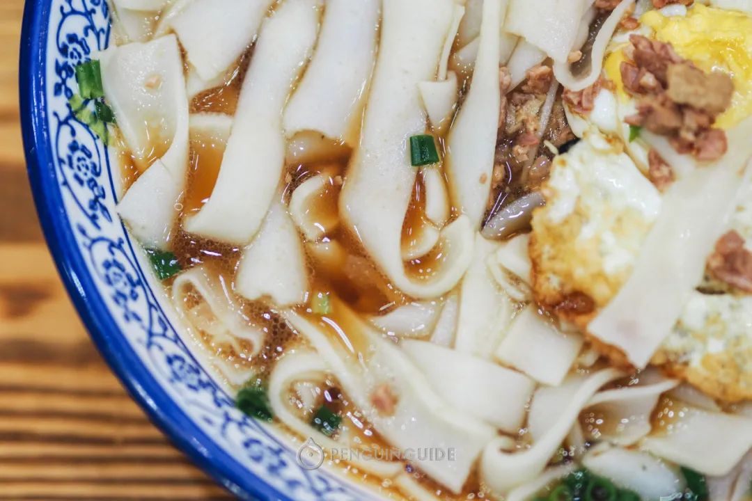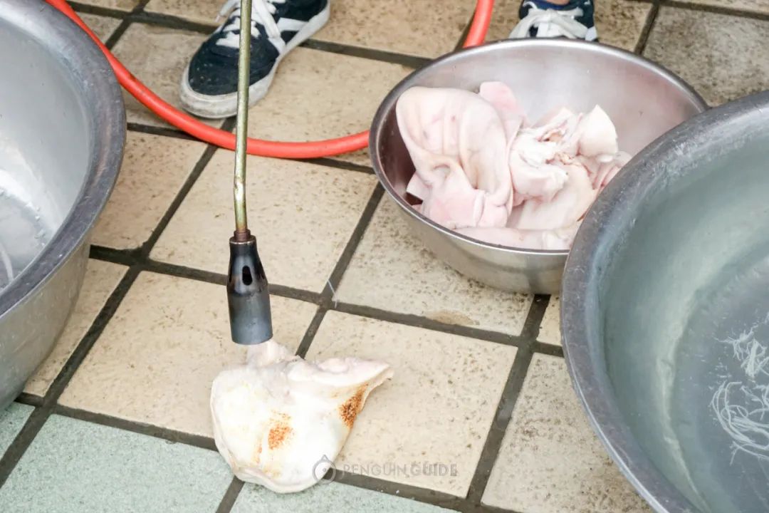 店里还有自己的卤味:卤大肠卤猪耳,偶尔还能碰见老板在门口烧猪毛