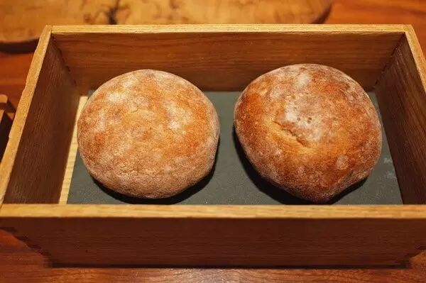 然后又碰到了我最怕的中场面包环节,扎扎实实两个圆面包,放在保温的木盒子里。服务生小心的提醒我们不要碰盒底,里面垫着一层特殊的发热物质,另一个小木盒里装两种不同的奶酪。