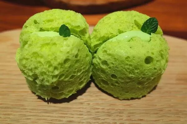 气泡面包是他家一大亮点,春天是翠绿色的豌豆,夏天变成嫩黄的玉米。口感更外表一样清新,里面夹着绿色的奶油酱。突然觉得这种餐厅真不适合单独来用餐,上来孤零零一个绿面包该有多撒比西啊。