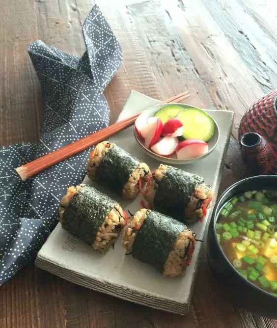 再来一颗裹着绿色蔬菜的饭团,营养均衡