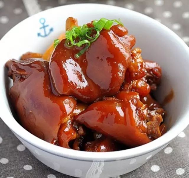 食材:(一汤匙=15ml):猪蹄500g、葱、姜、八角一颗、花椒十粒、生抽两汤匙、老抽半汤匙、料酒一汤匙、冰糖一汤匙、香油半汤匙。 做法: 1.猪蹄清洗干净,锅中放水放葱姜烧开后,放入猪蹄开着盖子煮两分钟,捞出用冷水冲降温,沥干。 2.炒糖色:锅中放一汤匙色拉油,放一汤匙冰糖碎(冰糖用布包好砸碎),小火煮到冰糖融化颜色变深。 3.倒入焯好的猪蹄,不断翻炒至粘满糖色。 4.倒入两汤匙生抽,半汤匙老抽炒匀至猪蹄全部上色。 5.倒入一汤匙料酒和姜片炒匀。 6.把一颗八角和十粒花椒装入茶包袋,和葱同时放入锅中。 7.加足量水没过猪蹄,水开转小火加盖焖两个小时。 8.开盖转大火收浓汁水,出锅前淋些香油炒匀即可。 提醒: 1. 猪蹄要开水下锅焯水。开水能让猪蹄的肉皮更紧实,炖制时不易烂。 2. 要用冰糖,冰糖会让猪蹄成品颜色红亮。 3. 为了成品软嫩只放生抽老抽不放盐。盐最容易使蛋白质凝固,所以不放一点盐。 4. 要控制好火候。炖制的时候一定是开最小火,用铸铁锅炖两小时,普通锅子要炖三小时左右。小火是保证猪蹄软嫩的关键,大火会将猪蹄炖的烂不成形。