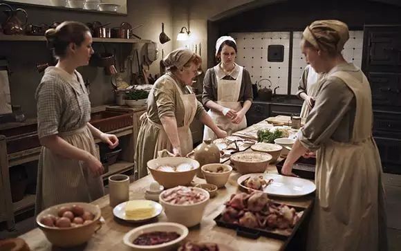 在《唐顿庄园》里,女佣们只能在厨房用餐。