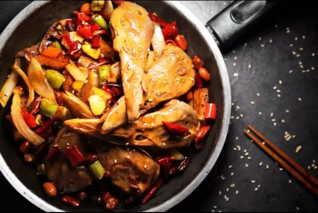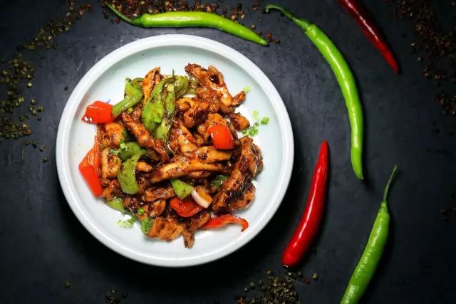 建议您在传统吃法之外尝试咬碎薄骨的口感。干锅炒制令鸭头骨酥入味,口感神秘得不可一世。让食客们根本停不下来。