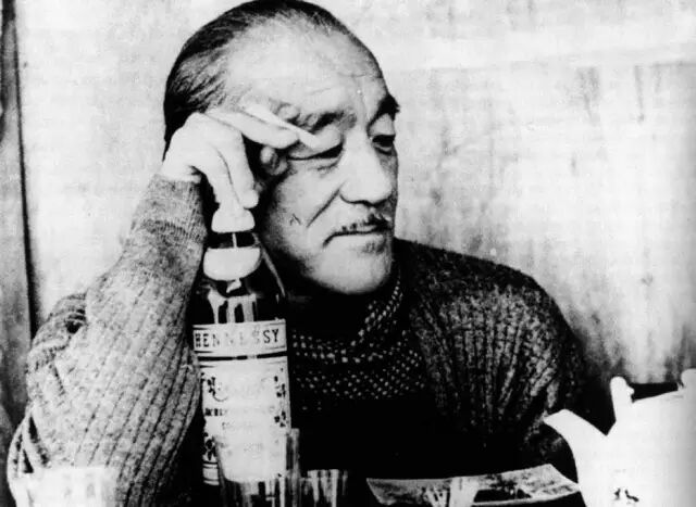 1953年,小津与野田高梧在旅馆的房间喝酒