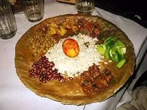 尼瓦风味这道美食特别有意思的地方便是其使用的盘子是用树叶缝制起来了的,这道美味无论是在造型还是口味上都是非常美味,也是绝对不能错过的一道尼泊尔美食。