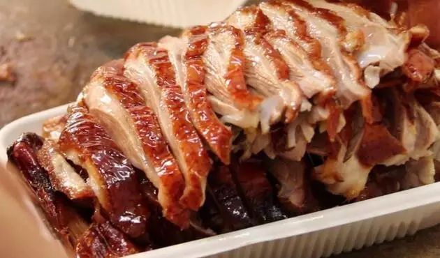 暂且先不说这南北烤鸭不同的制作方法,单烤鸭的吃法就大不一样了,南京烤鸭的吃法简单粗暴,一刀下去伴随四溅的肥汁,一只完整的南京烤鸭被斩成一指厚的鸭块配上密制卤汁,吃上整整三大碗米饭那都不是事儿。