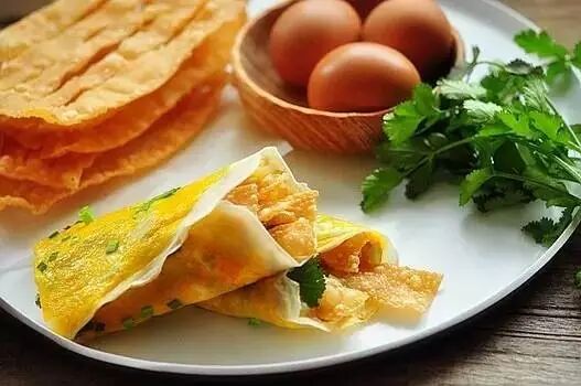 加一个鸡蛋则是风味最佳的时候,不加鸡蛋的煎饼,吃起来绿豆味更加纯粹,按天津话来说是“素的”,若是加两个鸡蛋不仅会影响绿豆的香味,操作时间长煎饼皮会略有些糊。当然你也可以自备鸡蛋,让老板给你想加多少个就加多少个鸡蛋。