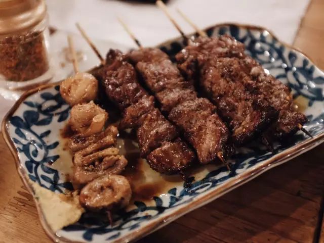 盐烤比酱烤厉害,盐烤猪舌意外地和昨日同一时间服用的本帮菜卤门腔似有共通之处,撒点七味粉佐淡薄盐味,是配酒胜选。