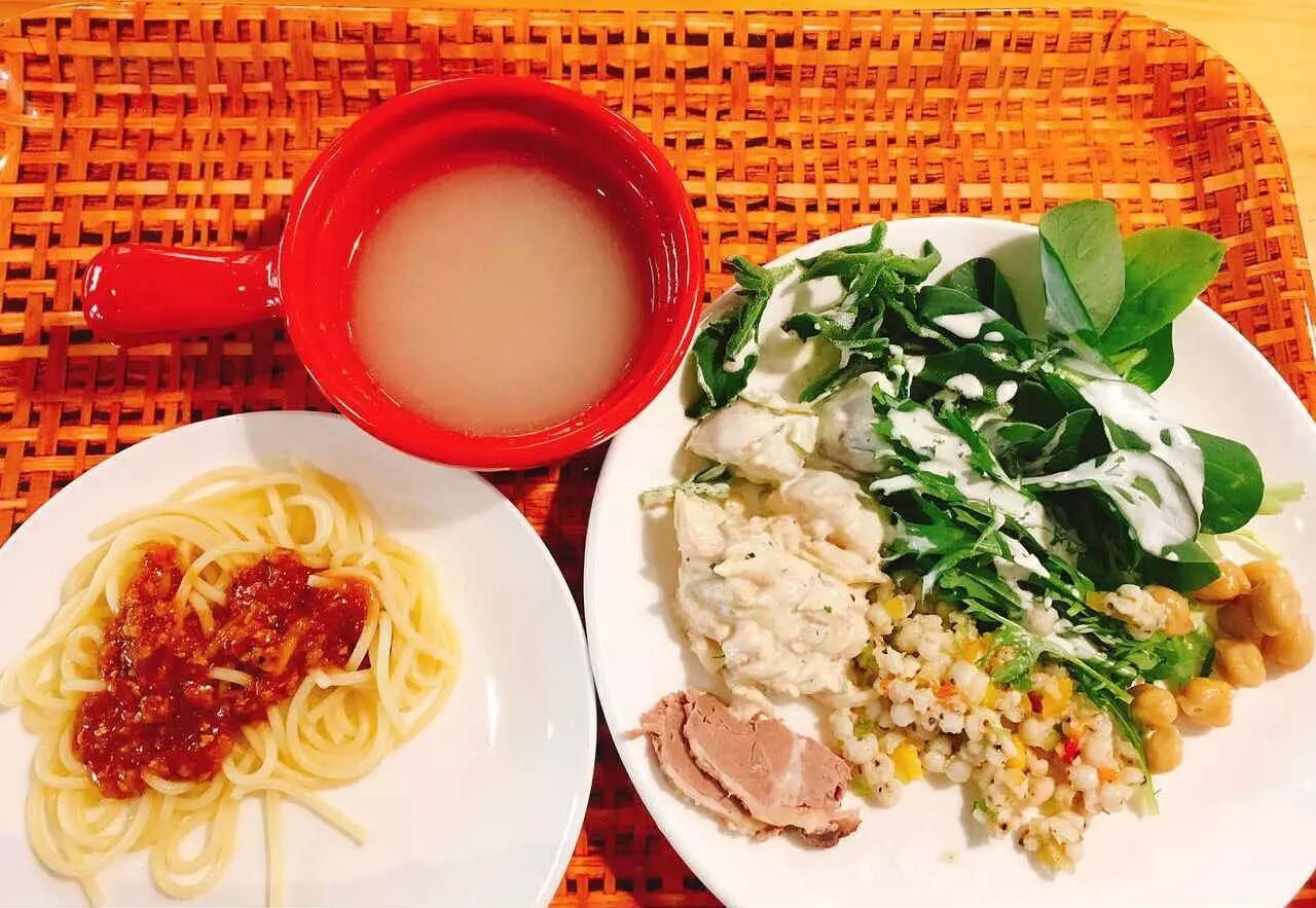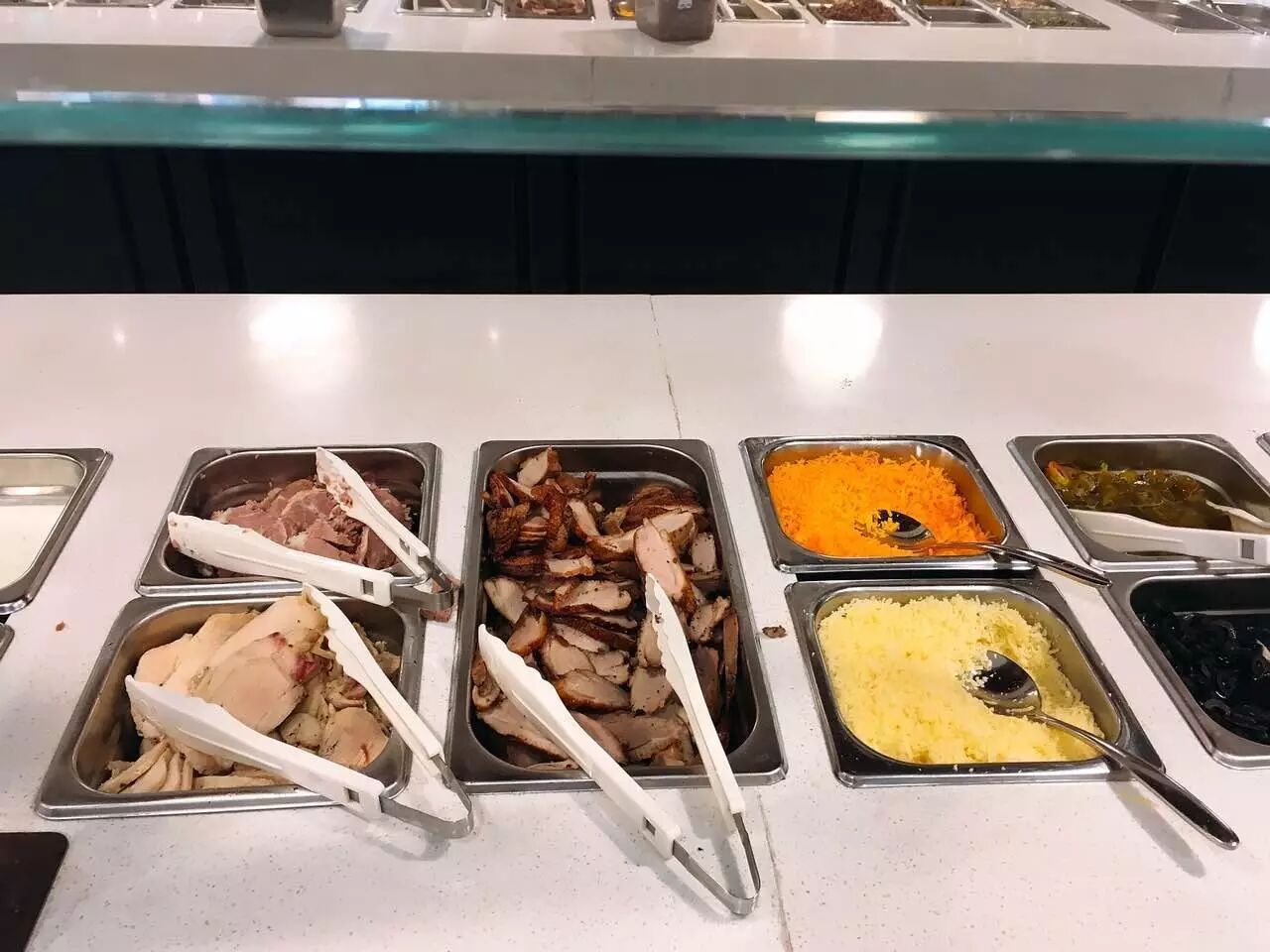 有烤过的鸭胸肉、鸡胸肉和牛肉。这些肉类都没有过度烹饪,也没有添加过多的香料,非常健康。另外,还有餐厅厨师提前拌好的金枪鱼沙拉~