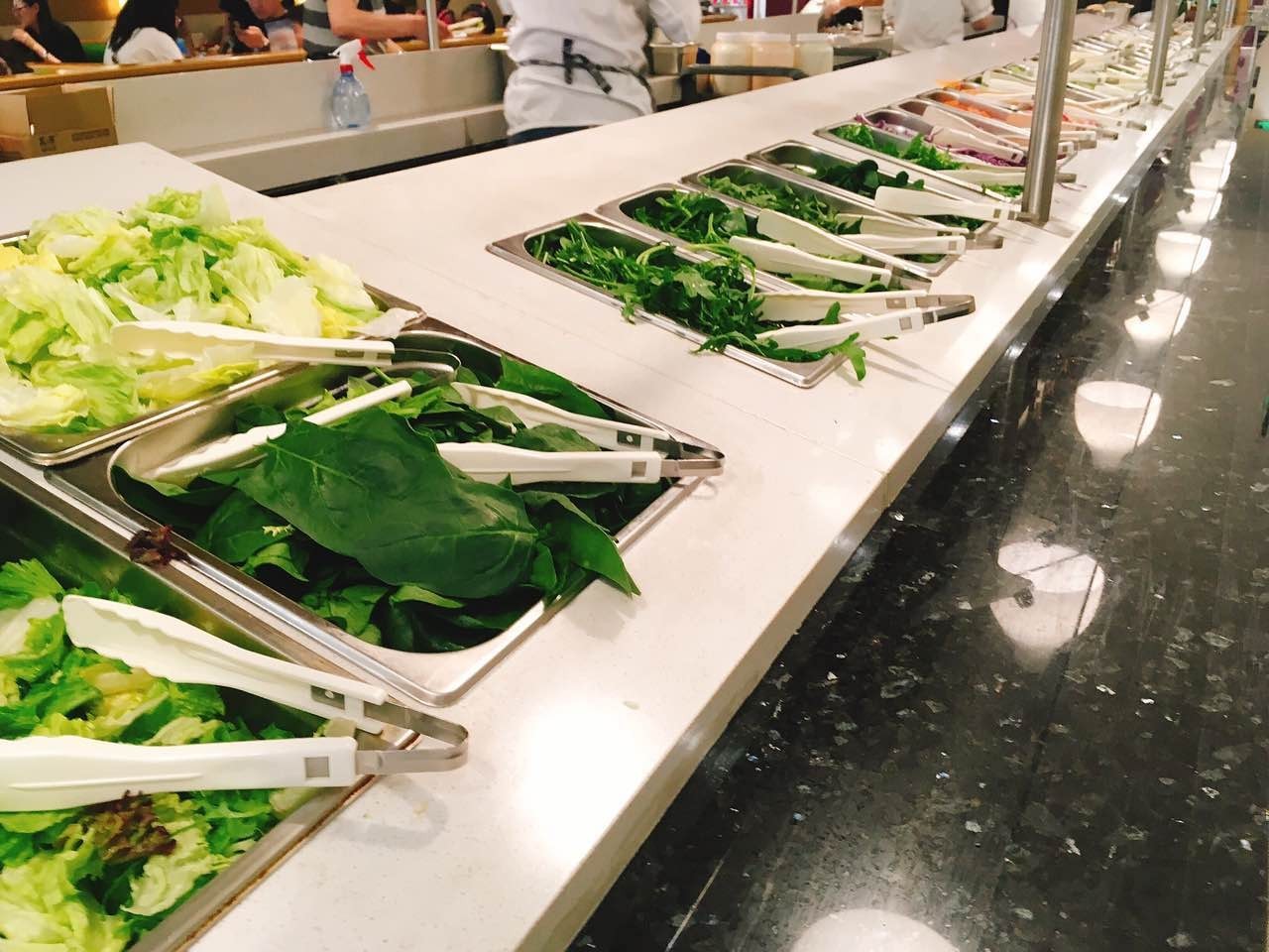 在这长长的吧台上,有种类多到让人眼花的沙拉菜可以选~