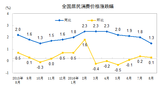 9月9日消息,8月CPI同比上涨1.3%,前值1.8%,环比上涨0.1%。8月PPI同比下降0.8%,环比上涨0.2%。CPI已连续三个月处于“1时代”,创去年10月以来新低;PPI指数连降54个月,但跌幅已连续8个月持续收窄。(综合国家统计局网站)