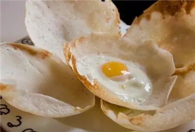 ▲Hopper最常见的一种吃法就是在中间打上一个鸡蛋,撒上胡椒、盐等作料,当然加上蜂蜜的鸡蛋碗饼味道也是不错的!