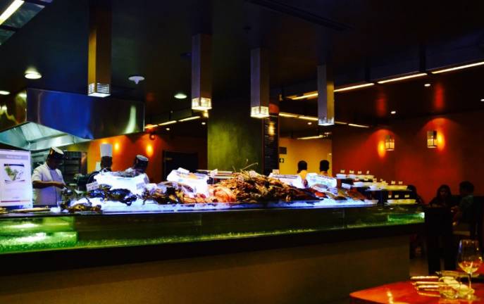 ▲除了自助餐外,提供新鲜的海鲜供顾客选择酱料、烹制方式,从透明的厨房可以看到你的食物如何被制作出来。无论从哪个角度来说,都会给人一种不虚此行的感觉!