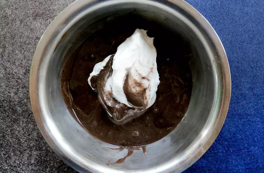 不要一开始就把可可面糊和蛋白全部混合,一定要分步