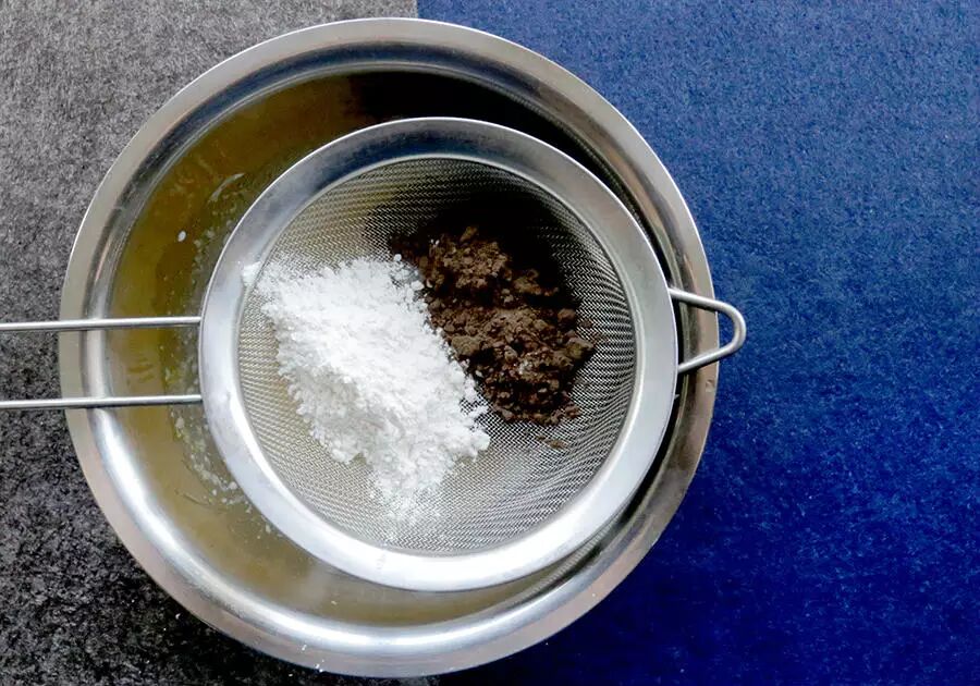 如果怕搅拌不到位,可以在过筛前混匀低粉和可可粉