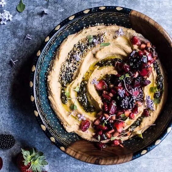 建议多尝试不同的调味品,比如坚果碎、干燥的香草碎、红椒粉、肉桂粉、香茅、鱼露、海苔、奶酪、烤肉酱……用量可以自行调整,创造完全符合你个人口味的鹰嘴豆泥。