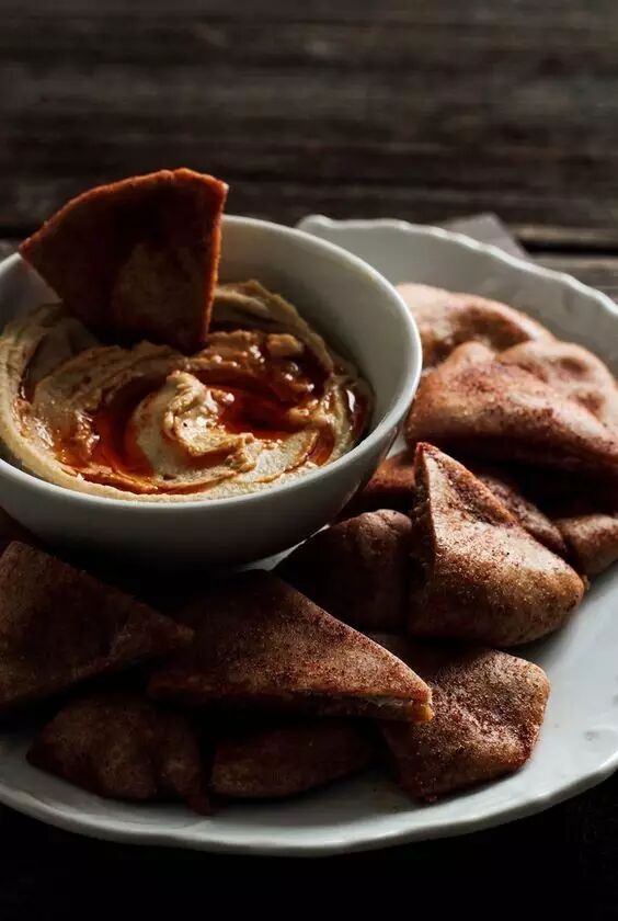 皮塔饼烤得太硬或面皮过厚,做成脆片蘸鹰嘴豆泥就能补救