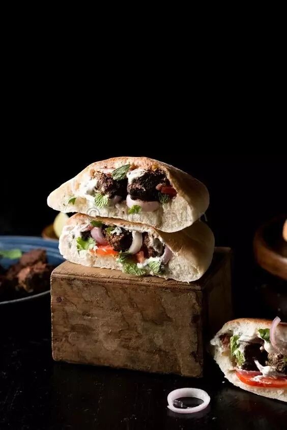 (皮塔饼切开后仍有一面封口,不像汉堡,咬一口漏一手)