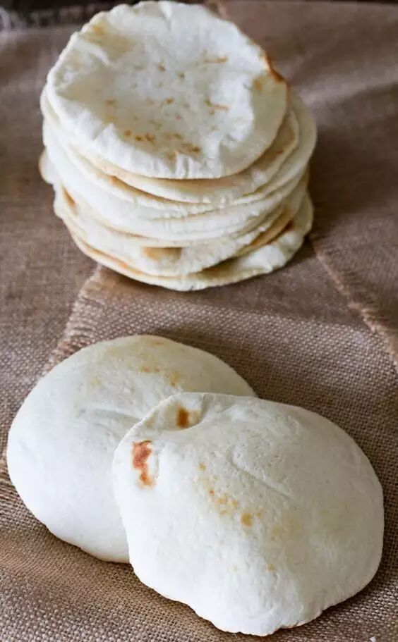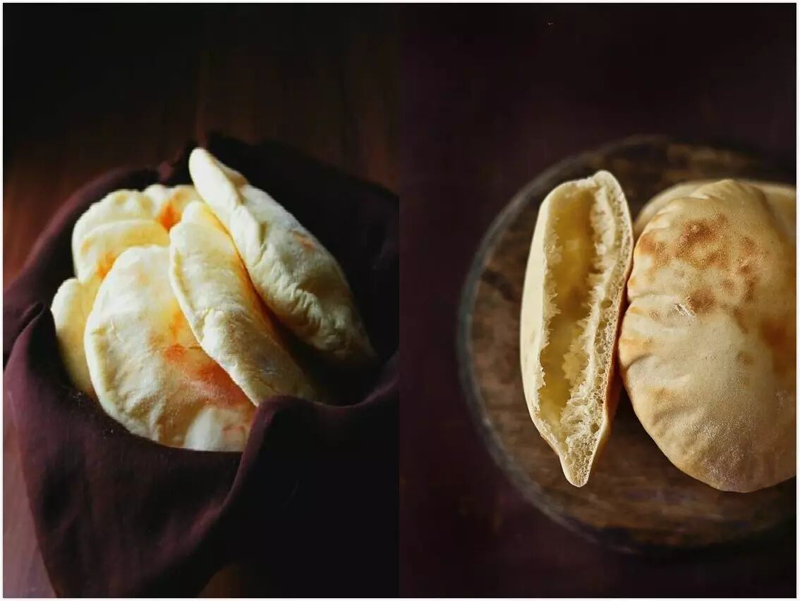 (皮塔饼摞在一起后会挤压掉气体,口感比单纯的饼更酥软)