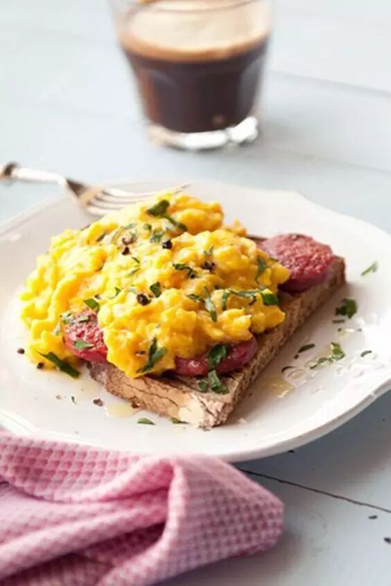 美式炒蛋配吐司或松饼,这种看似简陋的组合就是最典型的美式brunch。美式炒蛋和我们常吃的不太一样,因为加入了牛奶和黄油,口感特别的香滑、软嫩、湿润,再撒上少许黑胡椒、海盐和干香草碎提味,简简单单就能凸显出鸡蛋的香味。