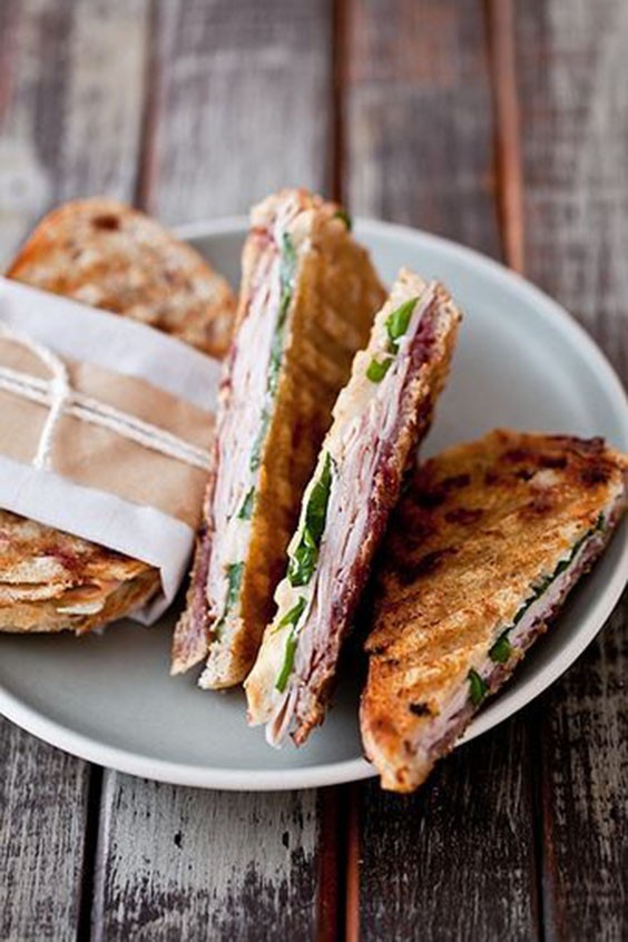 意大利人的brunch少不了帕尼尼,就是一种经过特殊处理的,意式传统的三明治。它既有一般三明治随心组合食材的特性,也有两点专属特色:一是要用意式酵头制作的面包作为三明治底坯,二是在夹好馅料后,要放在专门的烘烤机中热压一番,深棕色的烤痕和酥脆的口感是帕尼尼的标识。