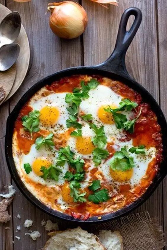 北非蛋是中东地区的特色菜式,小小一锅,集合了鸡蛋、西红柿、各种蔬菜和多多的香料,酸甜开胃,适合作为brunch的主菜。