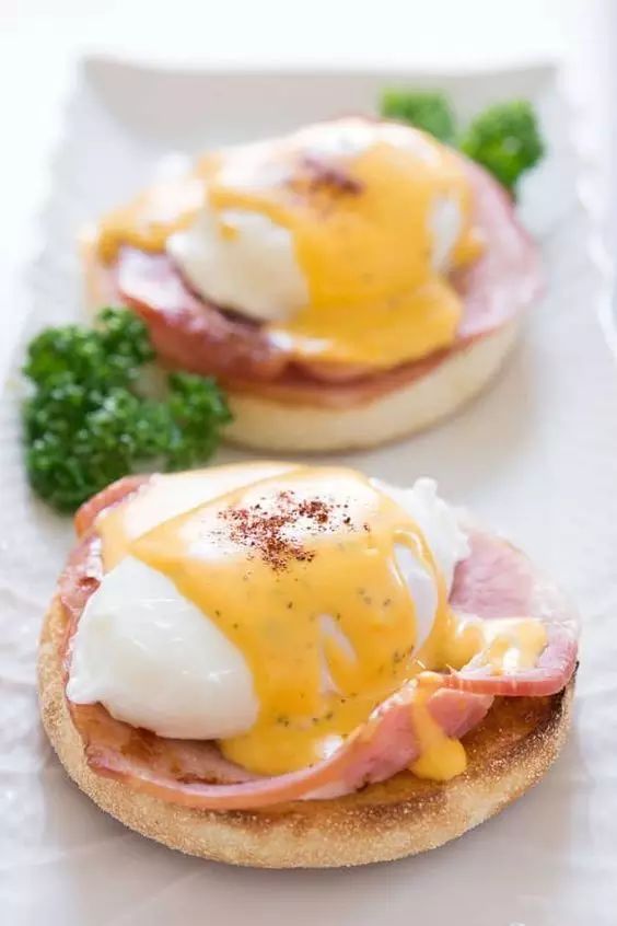 鼎鼎大名的班尼迪克蛋,是19世纪始于英国,却被法国人将酱汁发扬光大,又走红于美国的“国际性”brunch菜式。班尼迪克蛋的灵魂是水波蛋和荷兰酱:当你用刀子把蛋切开,热烫的蛋黄汩汩流出,跟以蛋黄、奶油、柠檬汁、胡椒、盐搅拌混煮而成,香浓微酸的荷兰酱融为一体,再用叉子叉起一小块烤出油的火腿和英式玛芬……层层叠叠的口感简直美到没朋友。