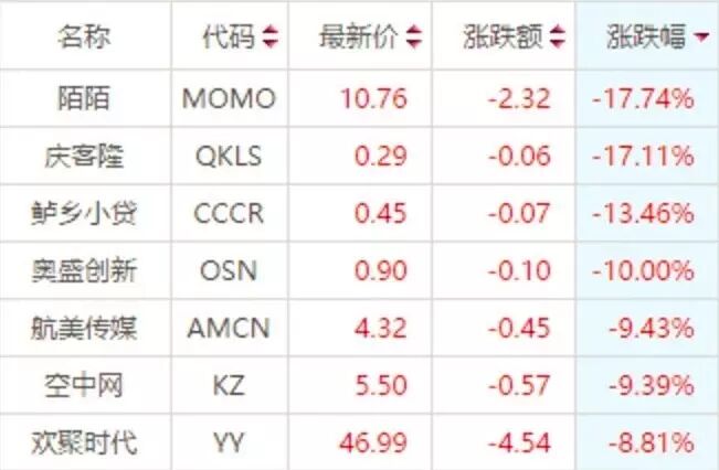 中概股5月11日再现集体暴跌,全市场仅十余只个股上涨,跌幅居前的多在走退市程序拟回归A股市场。陌陌领跌17.74%,至此,其股价在五个交易日内已累计跌过30%。(财新网)