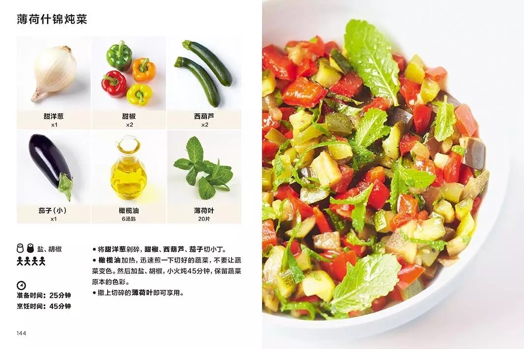 1.简单速成:每道菜只用2~6种食材,超市易买;做法简单,大多用时10~20分钟。
