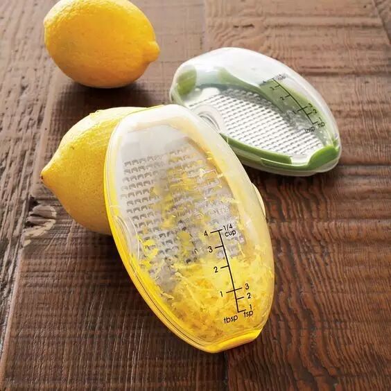 (1) 对于初学者与想获得细小柠檬皮丝的人来说,可以用奶酪刨丝器刮柠檬皮,注意只要刮一次,不要刮到柠檬皮里面的白色部分。