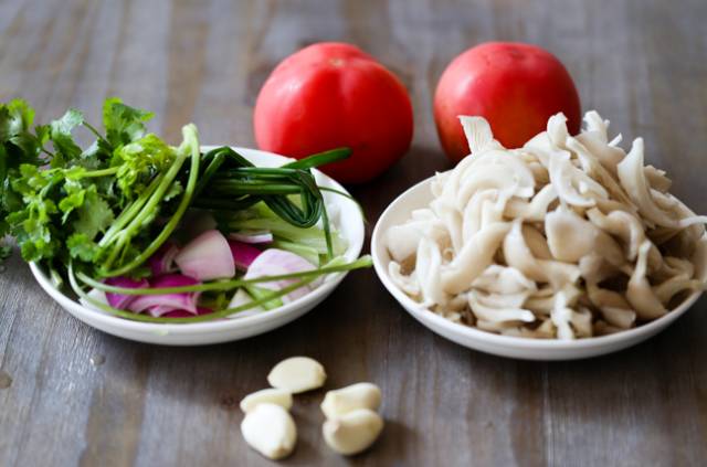 2.蘑菇、西红柿洗好,洋葱切好,备用