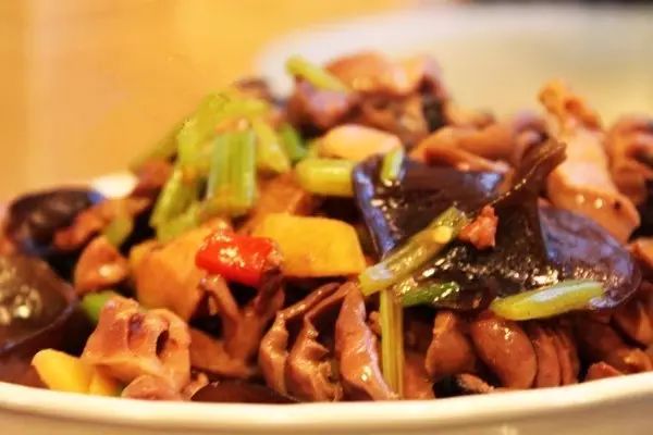 5.鸡杂断生后加木耳炒匀,撒上葱花即可。