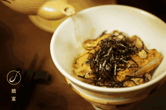 煎茶就是用热水去泡茶,不要过浓,否则茶味太重。米饭上浇的茶单用粗茶不好吃,只能用煎茶,需要煎茶的香味和苦味,浇上稍微浓一些的茶,味道才能调和。