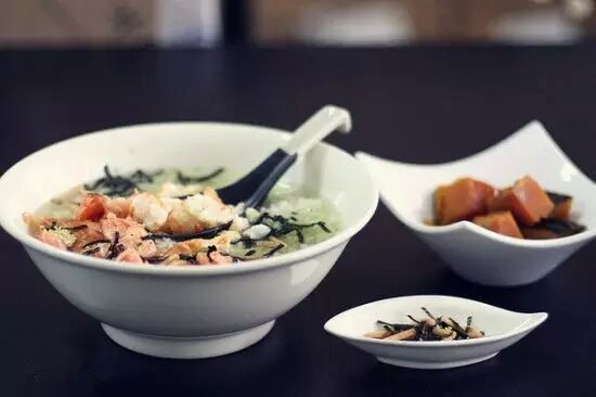 日本的茶泡饭始承平安时代的热水泡饭和水饭,到了中世一般人也不一定吃得到,等到普及至庶民时,茶泡饭才成就了今天这种凝聚了料理功夫,又趣味盎然的样子。所谓的茶泡饭真髓,既可以作为欢愉舌尖的奢侈晚餐,也可以作为抚慰人心的实用轻食。