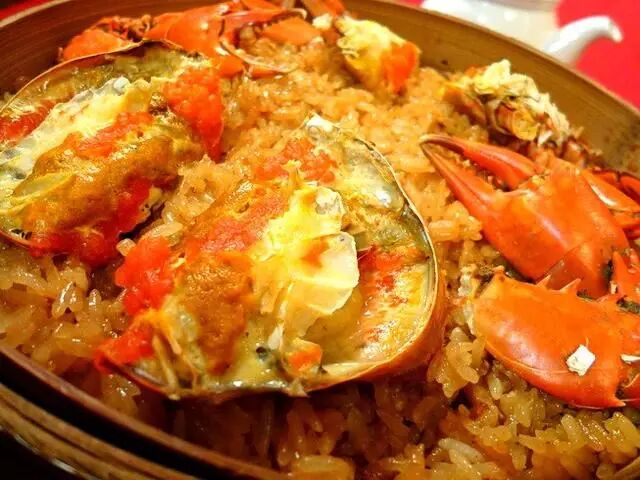 我们家是大螃蟹和糯米一起煮,俗称红鲟饭