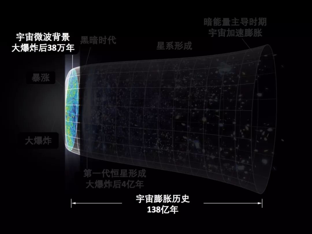 暗能量的研究方法其实非常类似于人口普查,只不过我们是对星系进行人口普查。实际上地球所在的位置就是这个图的中心点,我们观测大量的星系,去测量星系的光谱等等科学的属性,然后对星系的三维分布进行研究。