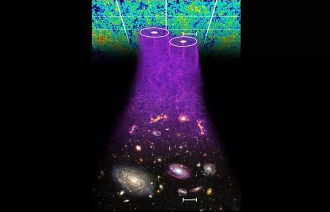 当然,要测量星系的三维分布不容易,我们在实验室里面测长度可以用尺子,但在太空里面要用什么当尺子呢?这是我们用的一个非常重要的物理学的参量,叫作重子声波振荡。