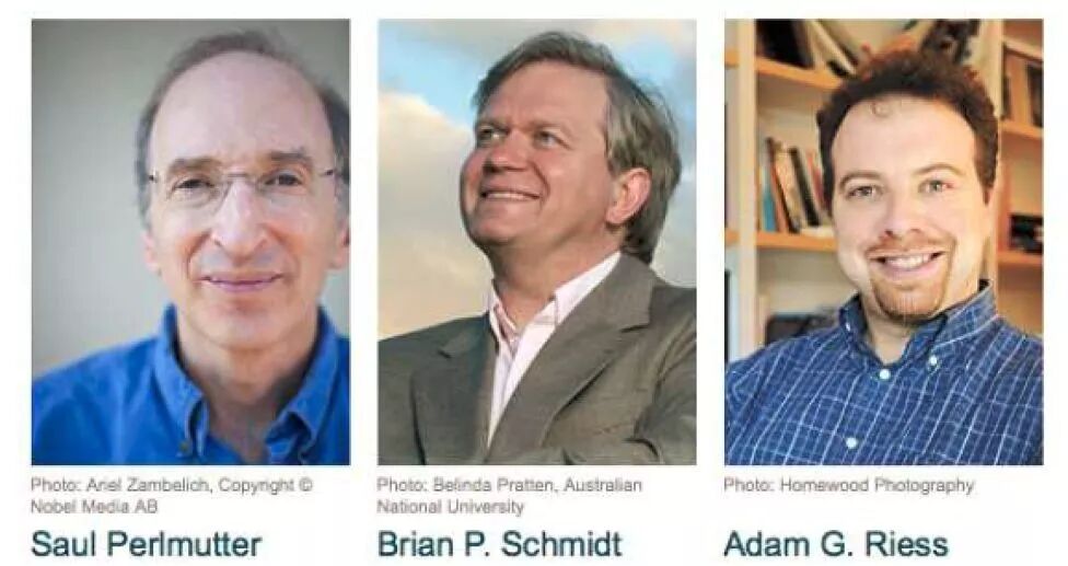 ▲ 发现宇宙加速膨胀的三位科学家
