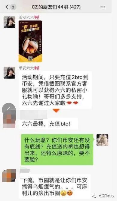 甚至还有传言称,来币安充值,不仅有折扣奖励,还会获得女孩子的私密小礼物。不过后来图中的币安六六对此表示否认。