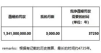 有人算过一笔账,薇娅缴纳的罚金,相当于一个普通打工人干3.7万年。