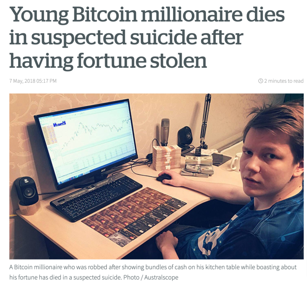 2018年2月1日,一名大学生自杀身亡,他在加密货币上投资了1.85万美元。
