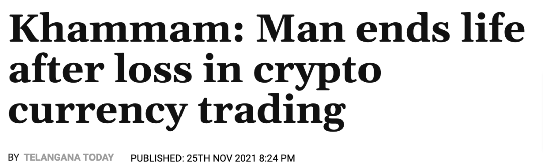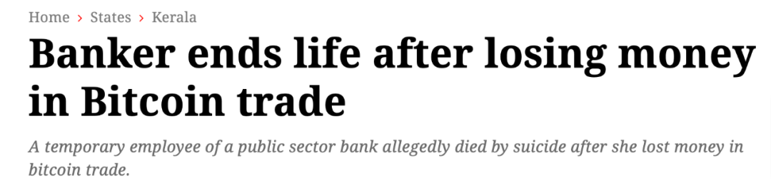 2020年10月,印度一名比特币投资者杀死自己的妻子和2个孩子,然后自杀。